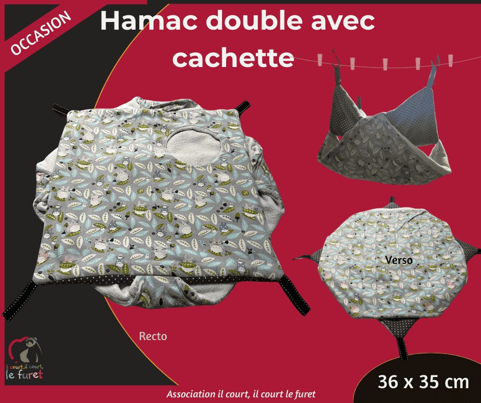 Les furets adorent être bien au chaud! Investissez dans ce grand hamac tout doux pour y dormir et s’y cacher . Un lit douillet pour vos furets !