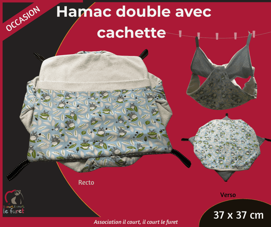 Les furets adorent dormir tous ensemble dans le même hamac mais…ça déborde ?! Investissez dans ce hamac XXL avec 2 étage et une cachette pour dormir bien au chaud. Un véritable lit superposé pour vos furets !